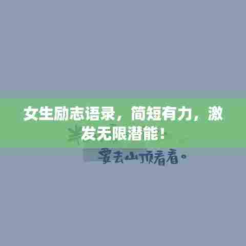 励志语录,有时候简短的话语却能够给人带来巨大的力量和鼓舞,以下是为女生们准备的励志语录,希望能激励你们勇往直前,追求梦想。