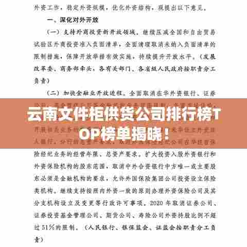 云南的文件柜供货公司在办公家具领域发挥着重要作用,在选择文件柜供货公司时,客户应综合考虑公司的排名、产品品质、价格、服务和创新能力等多方面因素,选择最适合自己的合作伙伴。