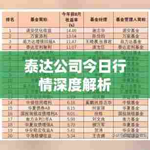 随着全球经济的不断发展和市场的日益繁荣,众多企业纷纷崭露头角,其中泰达公司以其稳健的经营策略、创新的产品研发及良好的市场口碑赢得了广大投资者的关注,本文将为您带来泰达公司今日的行情最新分析。